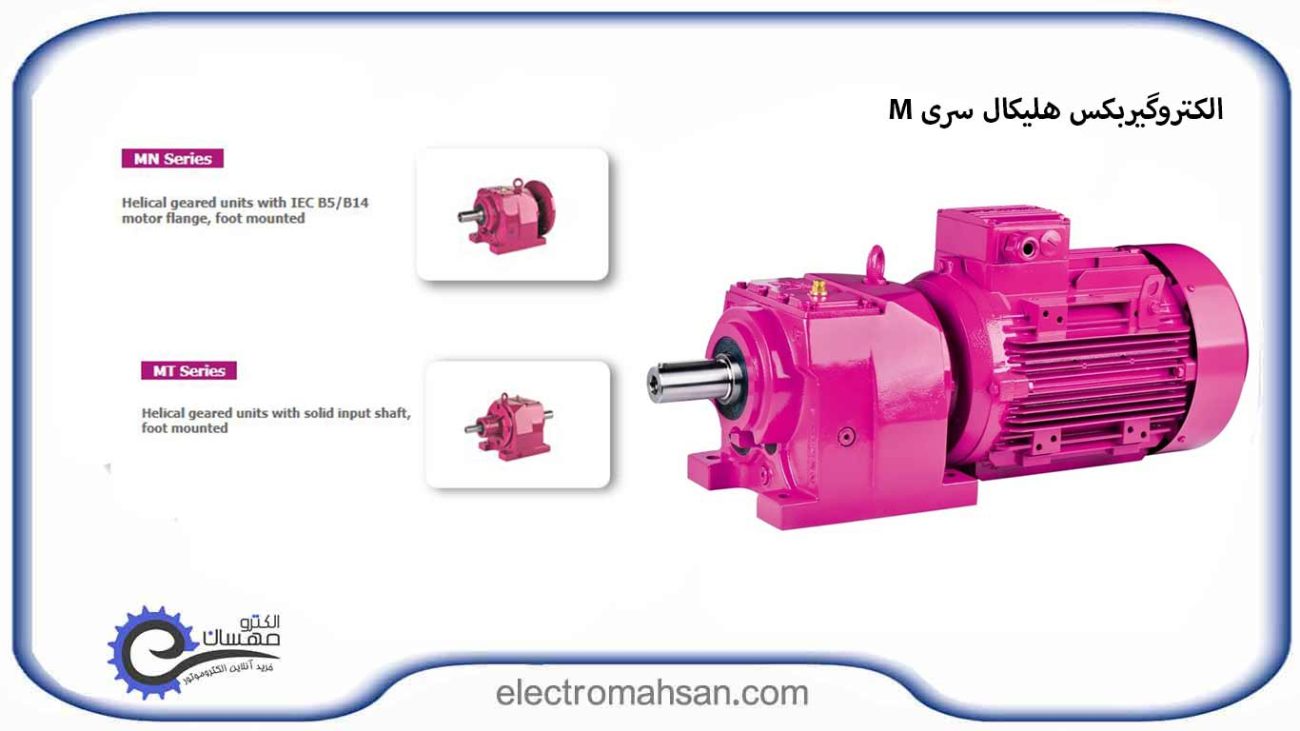 - زیرمجموعه‌ها: (MR) موتورهای گیربکس هلیکال، پایه‌دار - (MV)  موتورهای گیربکس هلیکال با فلنج موتور IEC B5/B14، پایه‌دار - ( MN) گیربکس‌های هلیکال با فلنج موتور IEC B5/B14، پایه‌دار - ( MT) گیربکس‌های هلیکال با شفت ورودی جامد، پایه‌دار.